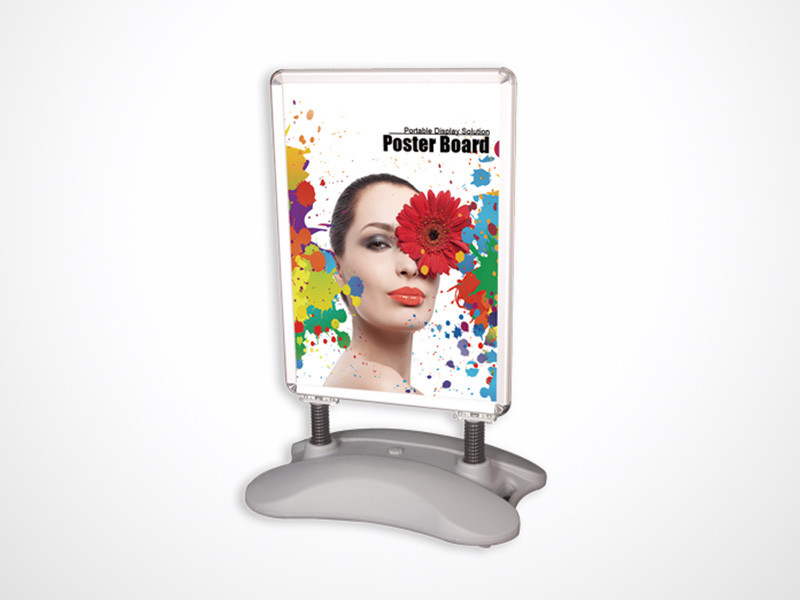 1、此款注水海報架共分兩部分,框架部分為鋁合金材質(zhì),水座為PE材料;戶內(nèi)和戶外均可使用;