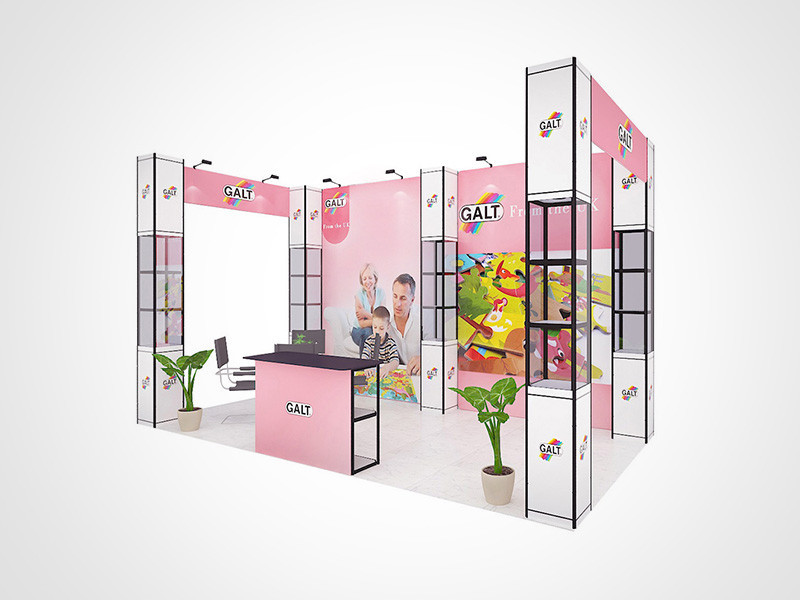 部分展臺的結構是基于多造型設計用料的,一套展臺材料在增加或減少部分桿組后,可按需求重新構建設計。再按需制作畫面,即刻多造型、不斷重復使用。為客戶節(jié)省相當可觀的參展成本。下圖簡單介紹一套展臺(增加部分桿組后)構建多種展臺造型的案例: